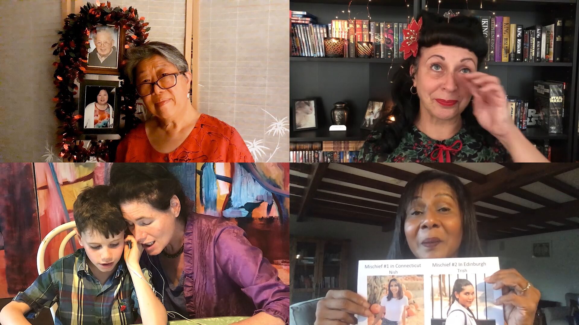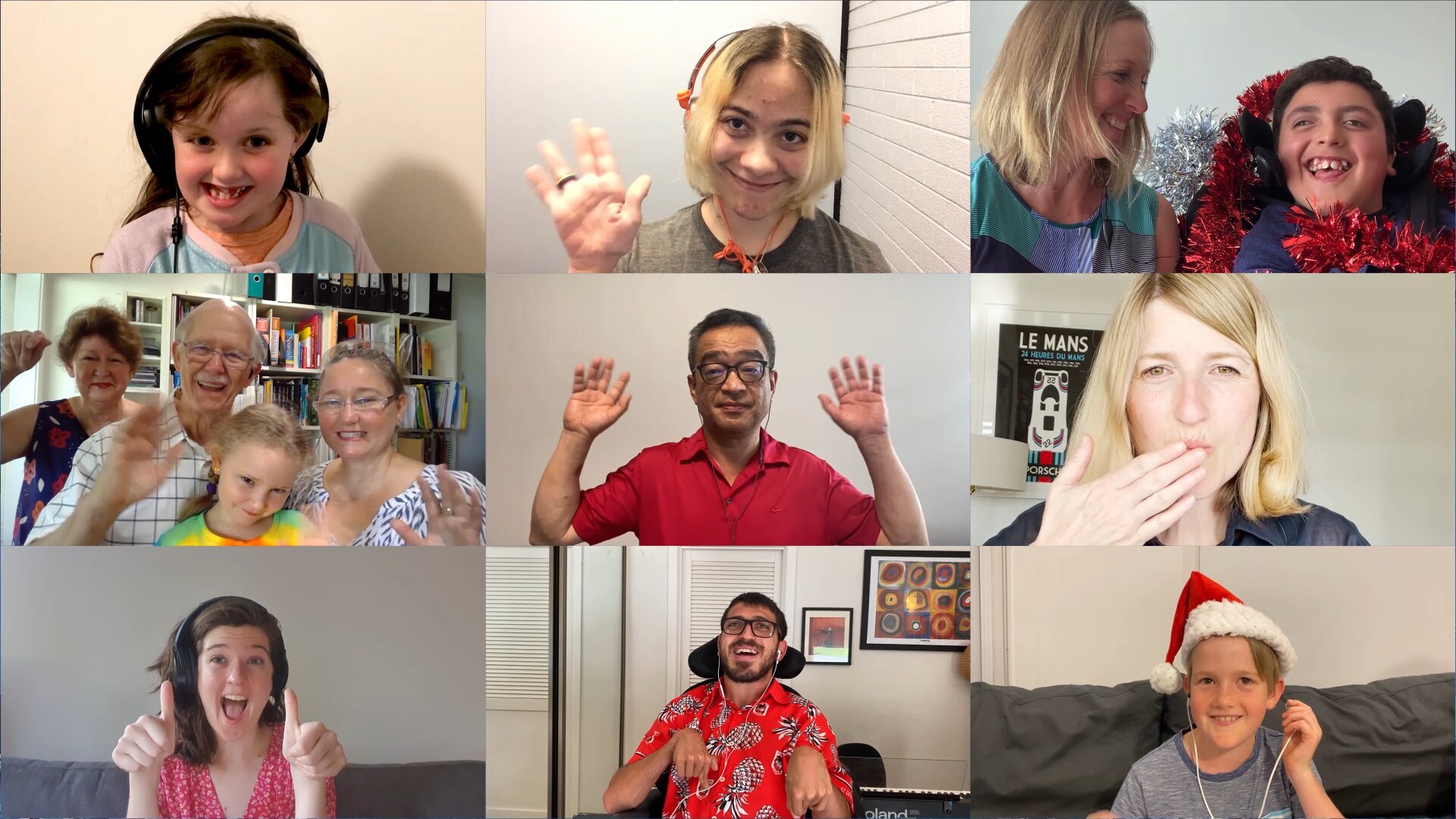 Many sang alone, or in household groups. Some sang with photos of the loved ones they’re missing this Christmas. Many donned Christmas-themed outfits, including a fully dressed Santa in front of a snow-covered background.