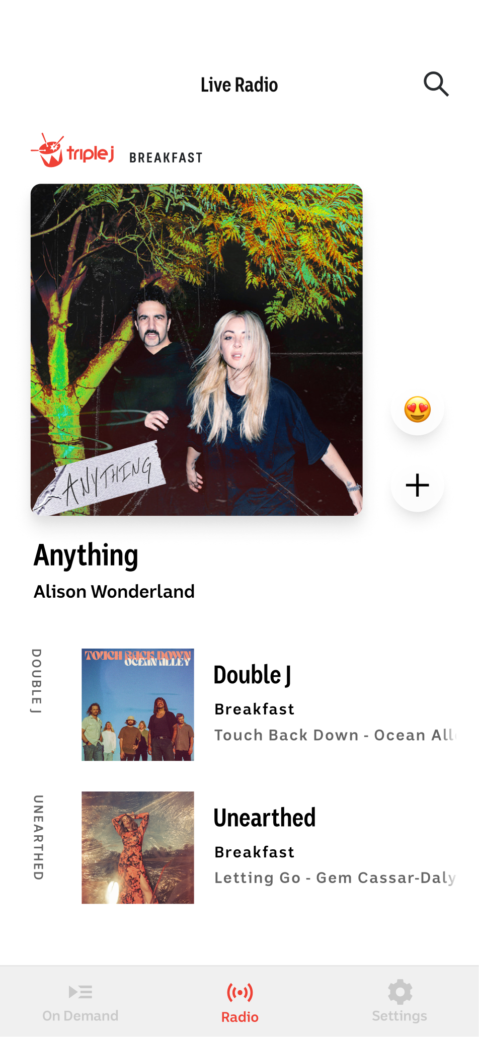 Seamlessly switch between triple j, Double J, and triple j Unearthed.